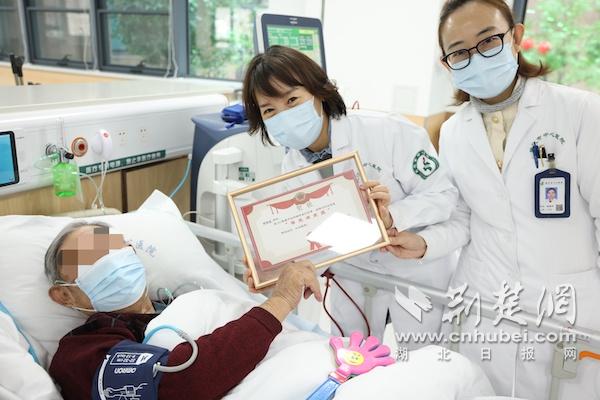 陈文莉主任为”肾友“颁发奖状鼓励他们积极治疗健康生活。通讯员供图