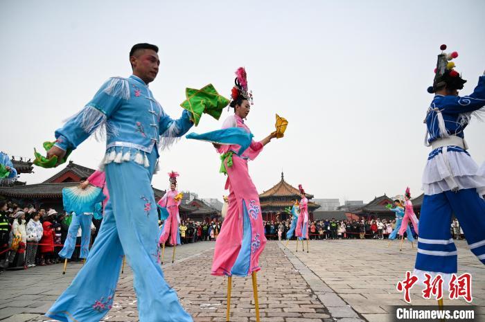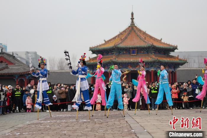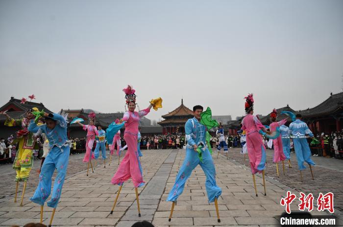 2月24日,国家级非物质文化遗产——辽宁海城高跷走进沈阳故宫,为游客送上精彩的展演。海城是辽南高跷的发源地,早在清康熙十二年(1673年)就开始在当地表演,距今已有300余年历史。初为平地秧歌,清咸丰年间变为高跷,后经不断创新,逐步完善。表演题材基本源于生活,多为群众喜爱的戏曲和神话故事。以手绢、彩扇、烟袋、马鞭等为道具,脸谱化装比较夸张,装束多以大红大绿为主调,具有浓郁的乡土气息。欢腾、奔放、热烈、火爆的同时风趣、诙谐,定会在元宵节让游客们感受传统技艺的魅力和“闹元宵”的喜庆气氛。