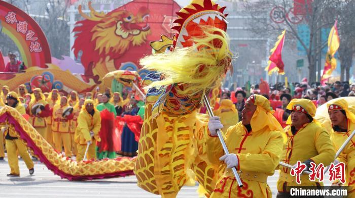 《九龙戏珠春潮涌》社火展演。中新网记者 王小军 摄