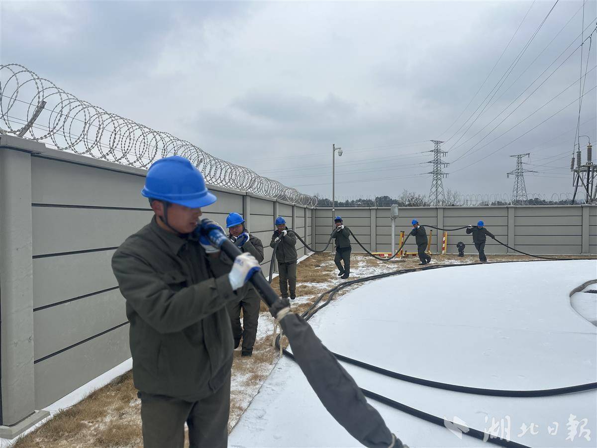 湖北日报讯 (通讯员徐扬)“融冰车已抵达现场,设备调试完毕,随时可以开始融冰!”2月23日,在武汉黄陂110千伏杨柳湾变电站内,国网武汉市黄陂区供电公司工作人员韩晓洲正开展110千伏柳电线直流融冰工作,消除输电线路覆冰、舞动隐患。