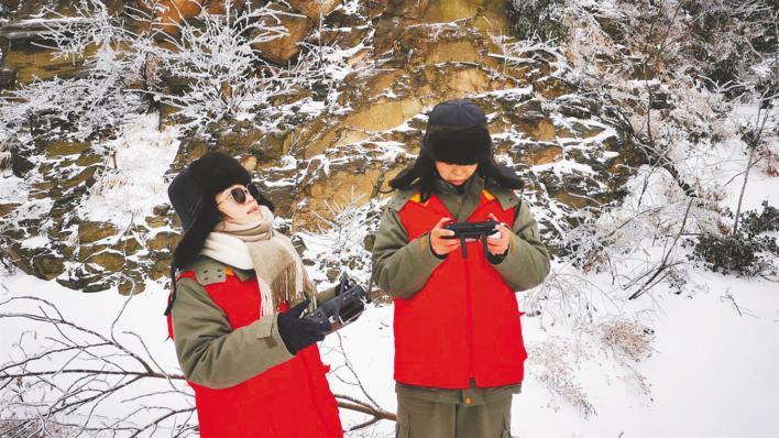 连续几天低温降雪,大悟县阳平镇附近的山路白雪皑皑,山上的500千伏孝浉二回部分线路覆冰厚度超过5毫米,覆冰较严重的线路位于海拔约300米的地方,大雪覆盖了道路,用无人机除冰最有效。负责操作无人机的是国网湖北送变电公司机巡作业中心的两位90后女飞手邹语晨和罗婷婷,经过4个多小时的工作,清理了20多米覆冰较为严重的线路。