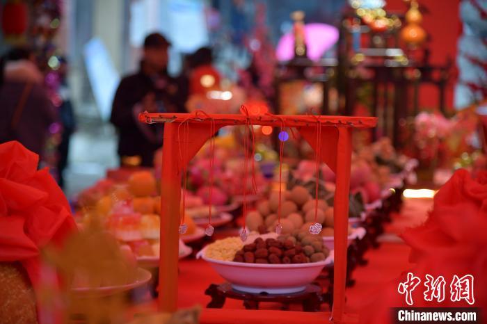 小镇处处张灯结彩,家家户户拿出水果、糖饼和地方小吃等摆在“迓圣”台上祭拜神灵,祈求风调雨顺、五谷丰登、国泰民安。