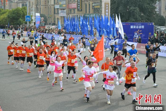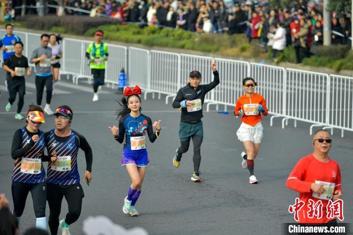 参赛者们身着各色运动装备向终点进发。记者 刘忠俊 摄