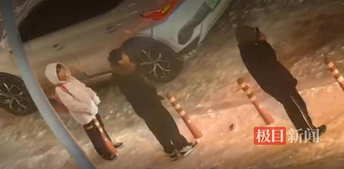 2月22日傍晚,网友“非长心理”发布短视频称:“在武汉市洪山区浅水湾路到卓刀泉南路的丁字路口,三位少年守在路口,为路过的车辆推车,从下午一直到路灯亮起。”极目新闻记者注意到,视频中的三人貌似初中生模样,其中一人背着一个红色背包。