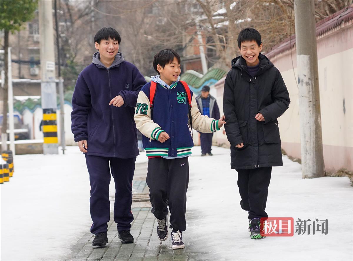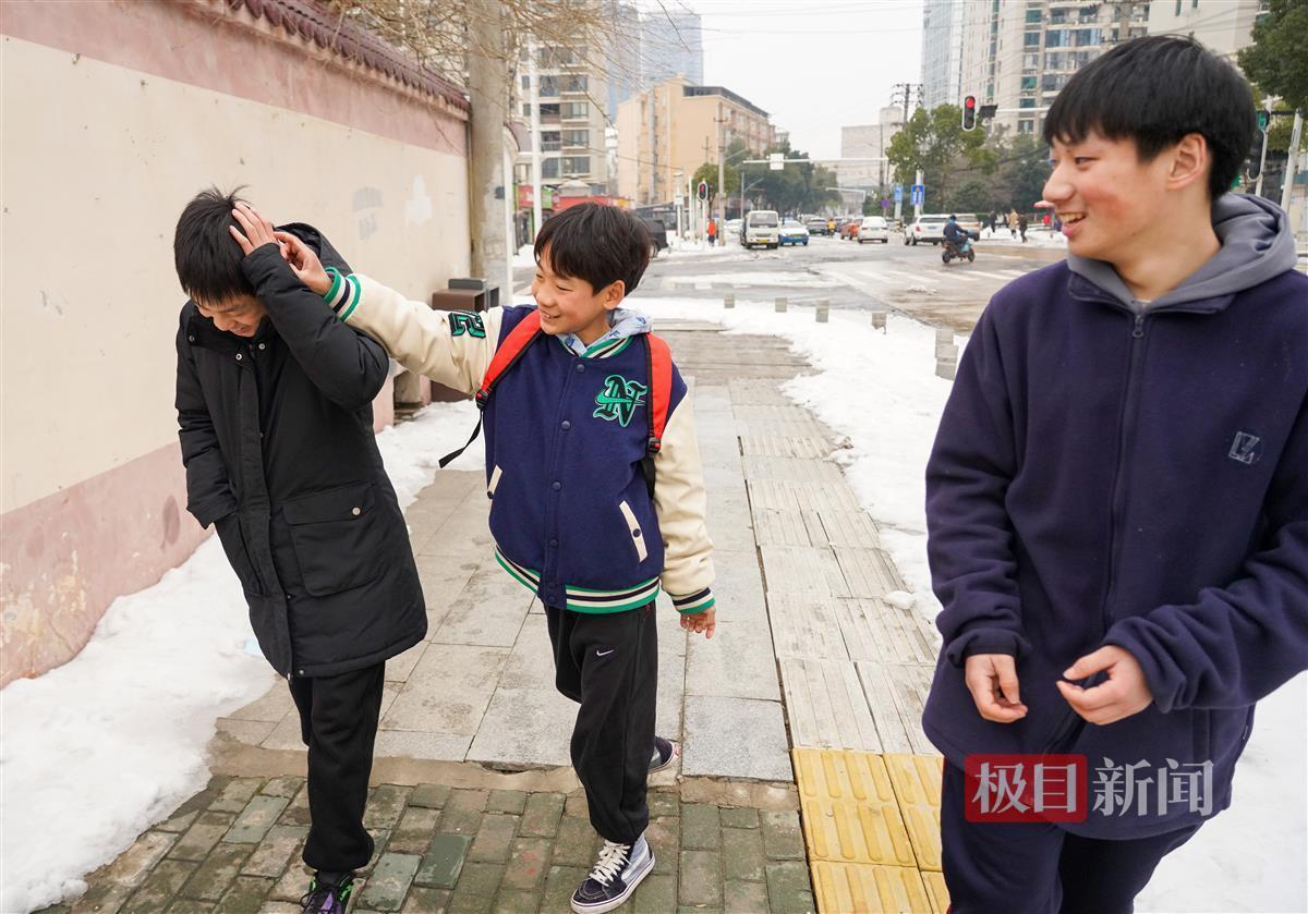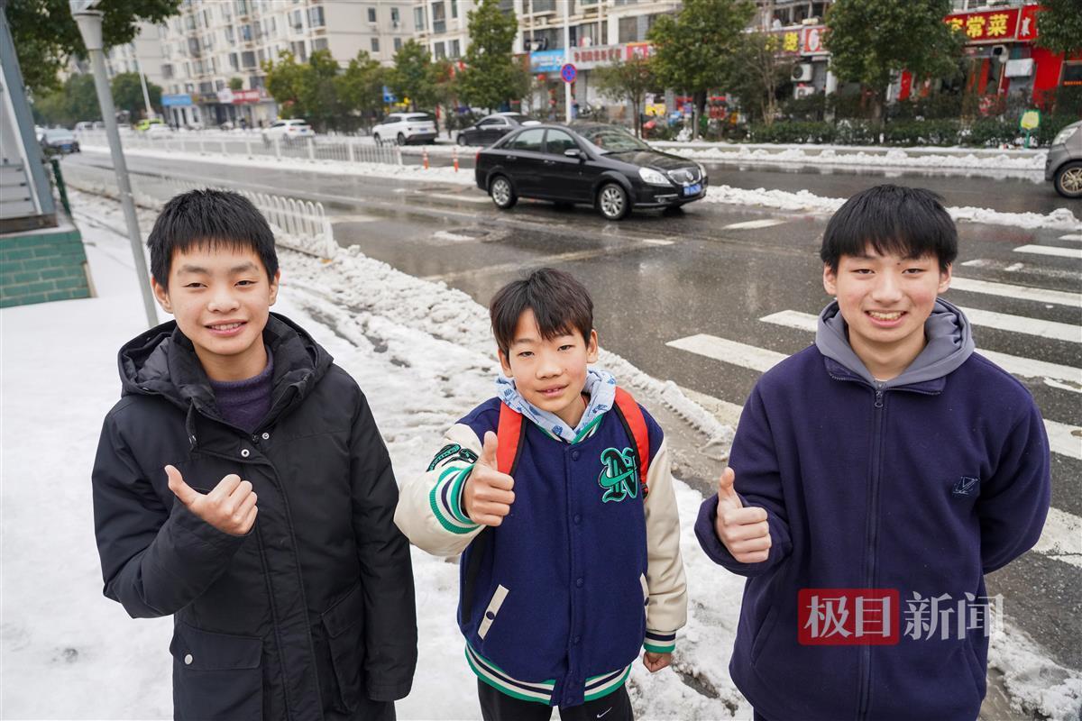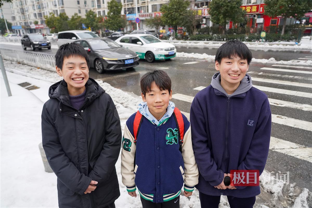 2月25日上午,三名少年面对极目新闻记者采访时,一会儿开心地讲述着,一会儿又害羞地低下脑袋。他们表示,推车时有一位驾驶员摇下车窗说“感谢三位少侠”,帮助别人很有成就感,但无论是否被人知道,他们都愿意去帮助他人。