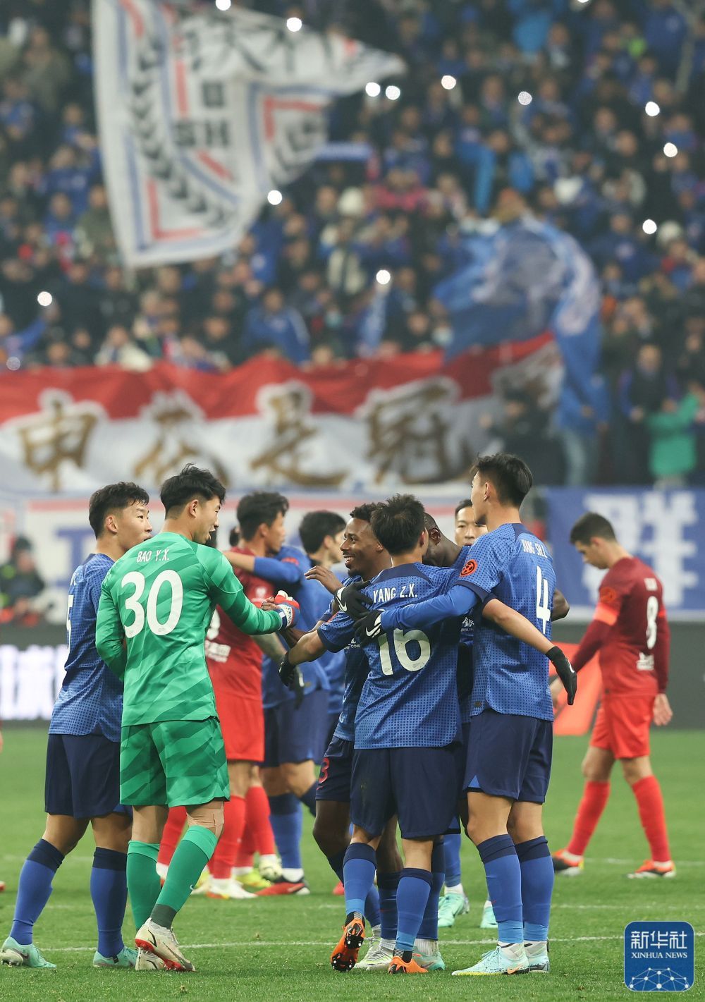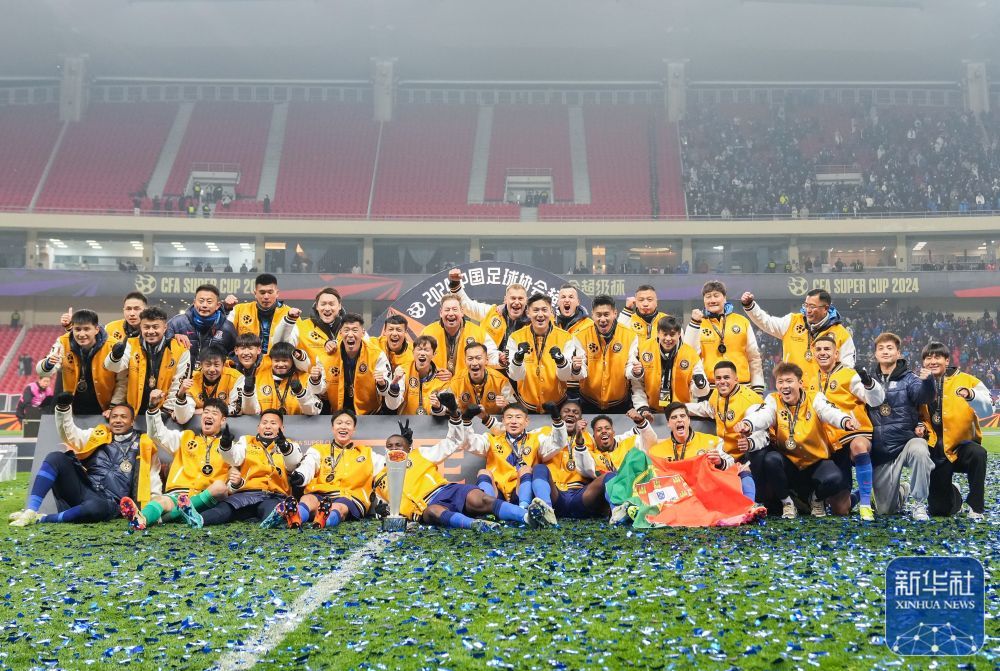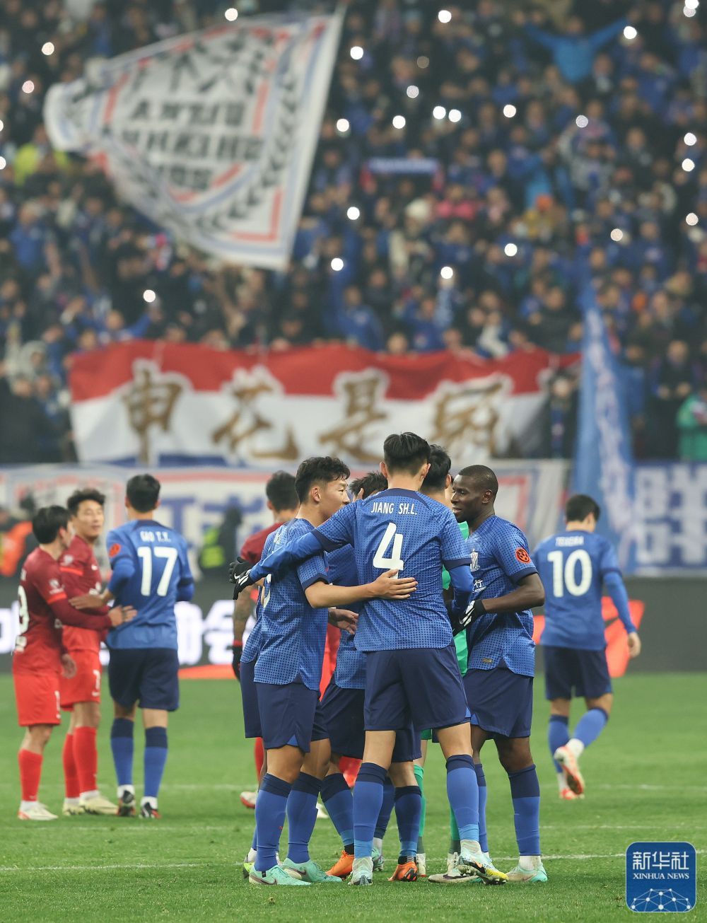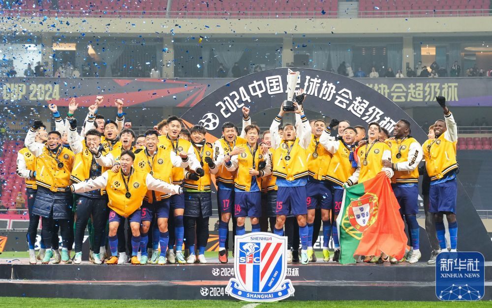 2月25日,在上海虹口足球场举行的2024中国足协超级杯比赛中,上海申花队1比0战胜上海海港队,夺得冠军。