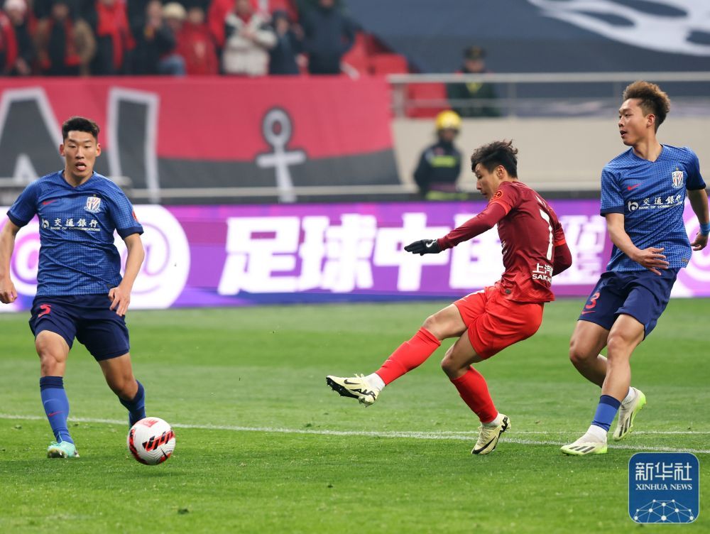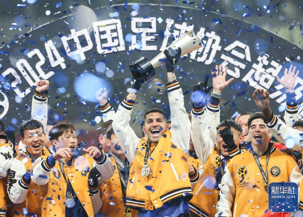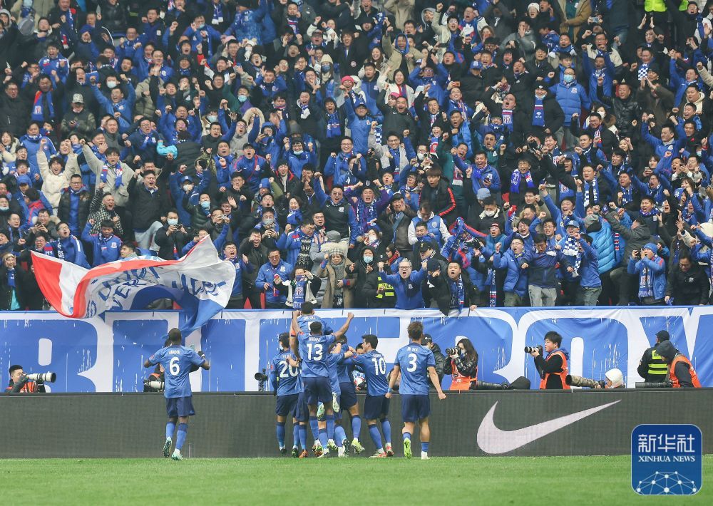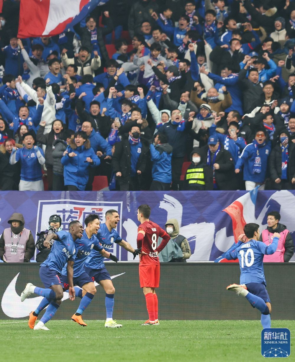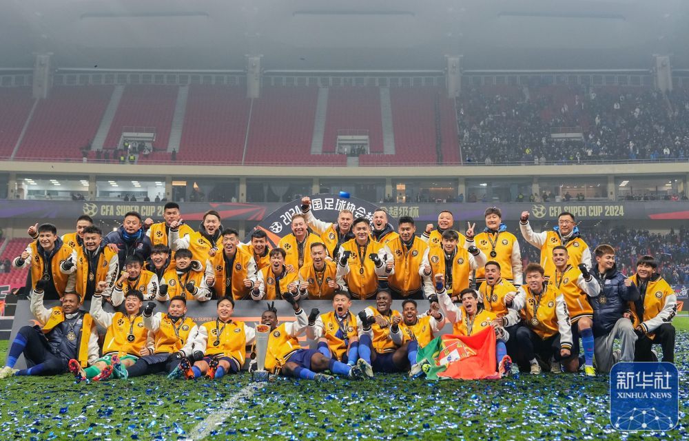 2月25日,在上海虹口足球场举行的2024中国足协超级杯比赛中,上海申花队1比0战胜上海海港队,夺得冠军。