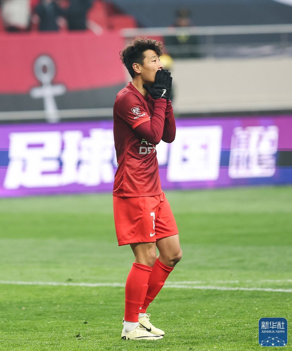 ↑上海海港队球员武磊在比赛中错失破门机会后。