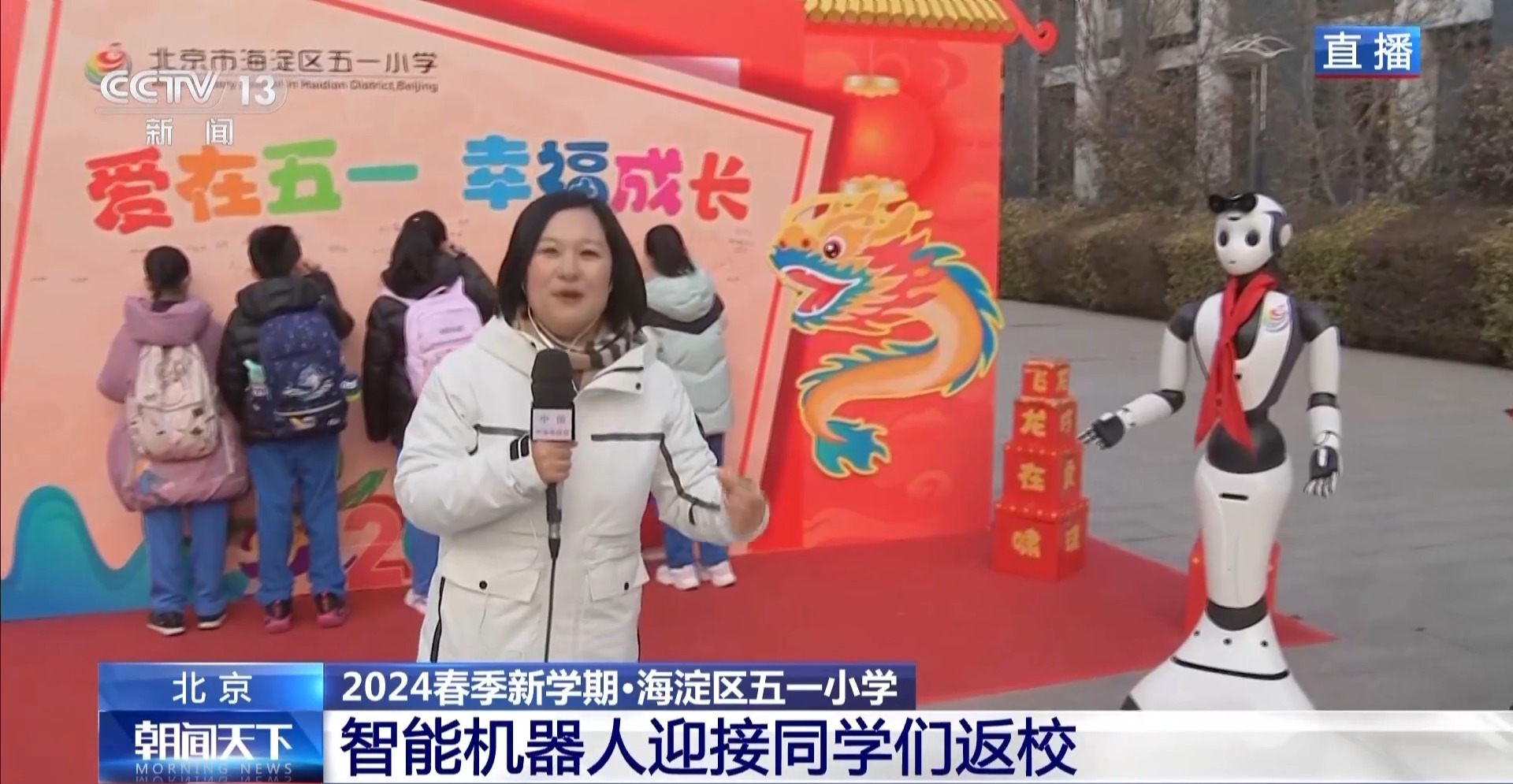 今天(2月26日)早上,除了老师们早早在校门口迎接孩子们以外,还有一位“新伙伴”,就是智能机器人,也吸引了很多同学跟他对话、合影。