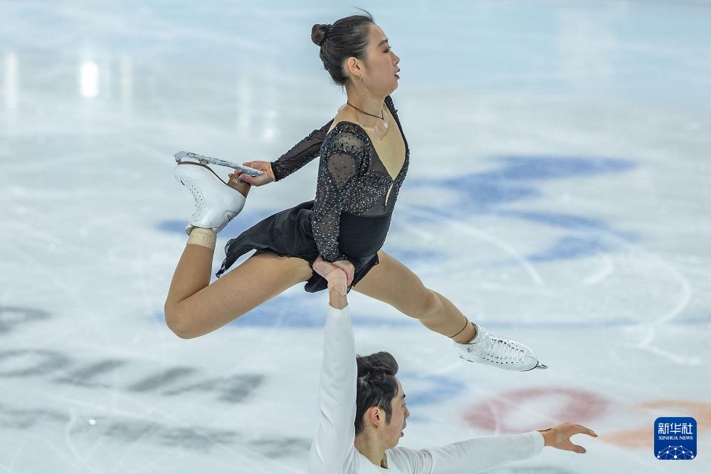 2月25日,北京队组合彭程(上)/王磊在双人滑自由滑比赛中。新华社记者 黄伟 摄