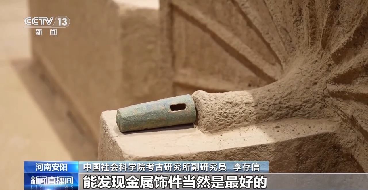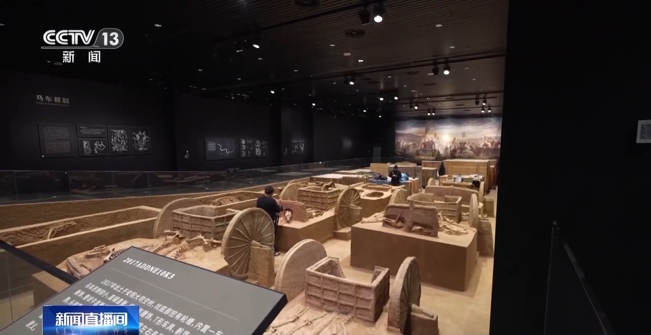 中国社会科学院考古研究所 副研究员 李存信:它和周边的回填土体是有一定区别的,包括颜色、硬度,我们再用考古工具,比如拿个手铲,拿个刷子,拿个小竹签什么的,在你清理的时候能感觉它的不一样,所以说从这个非常微弱的变化当中,我们要找到他的整个就是车轮的,包括车厢的大体上外观轮廓,能发现金属饰件当然是最好的,发现了它就证明这个它在车轮的最中间部分,就可以控制住这个车轮的外围状况,然后再往里进行,找到车厢的部分,车厢的高度、长度和宽度,甚至它的厚度,都可以根据现场考古发掘把它识别出来。