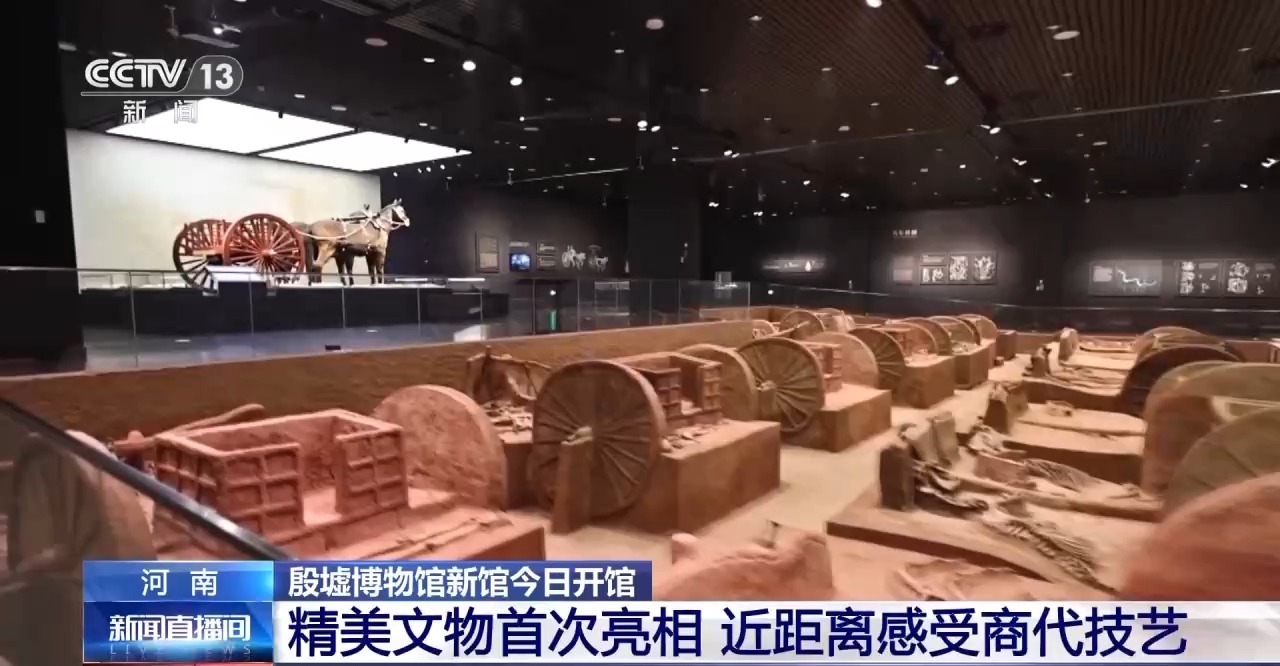 此次有不少文物是首次亮相,诸如集中展示的商代中期的青铜器,成组展示的亚址墓、马危墓等随葬器物,集中展示110余片花园庄东地H3甲骨窖藏坑出土甲骨;还有全部的亚长墓出土文物,通过多学科研究和科技考古手段,还原了三千年前商代将军的戎马一生;这次还集中展示了殷墟出土的23辆马车,生动还原了3000多年前车马浩荡的壮观景象。大量精美绝伦的文物,从不同的角度展现出三千多年前青铜文明的鼎盛面貌,也让观众近距离感受商代巧夺天工的技术工艺。