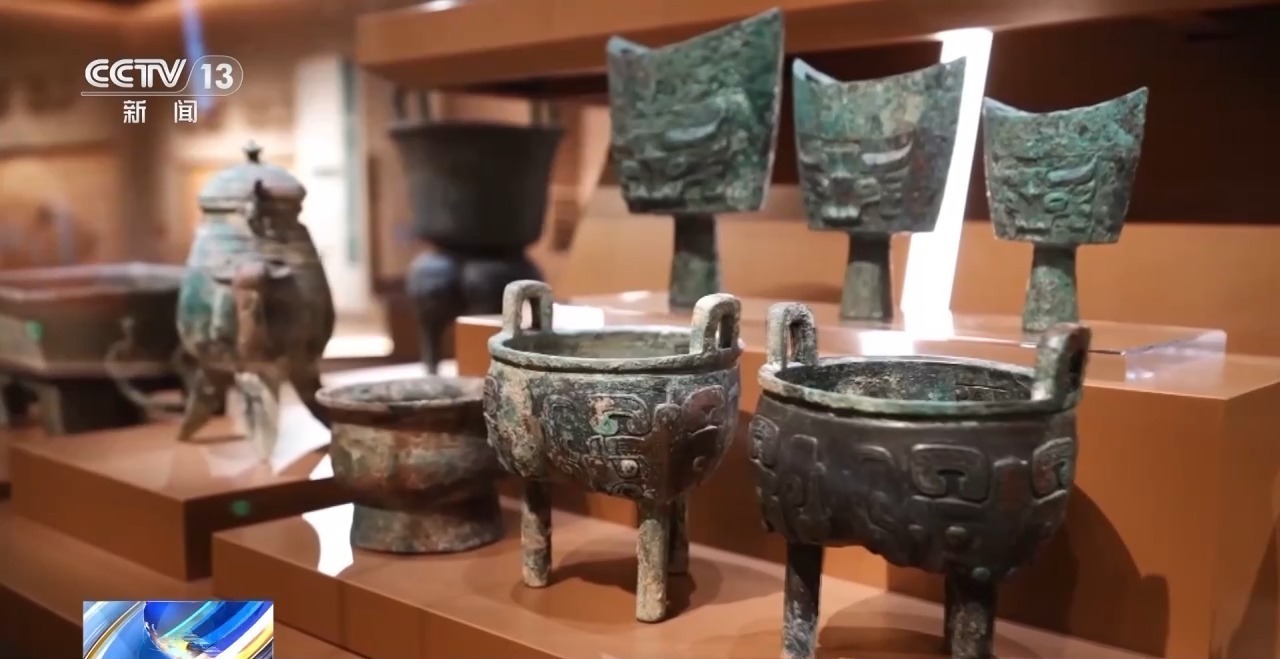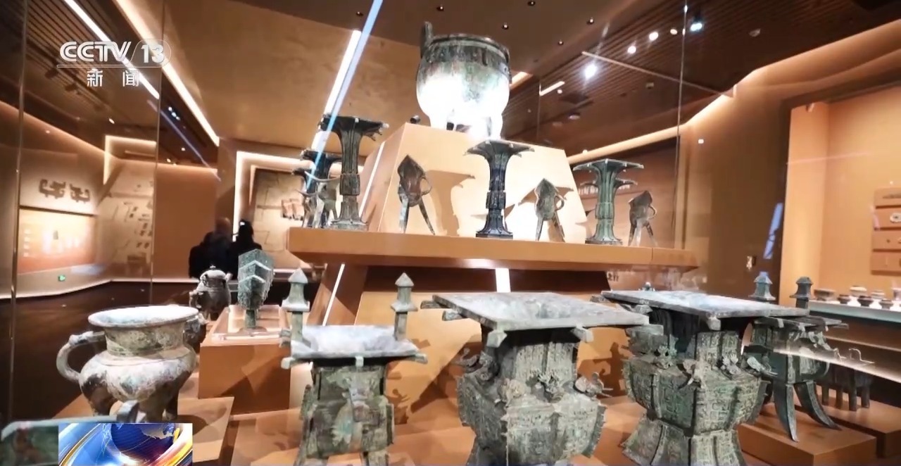 总台央视记者 田云华:在商代晚期,随着整个社会的发展,王朝的制度进一步得到了完善,形成了以商王、贵族、平民为三个层次的不同的社会等级,他们墓葬的形制和陪葬品的数量也是发生了巨大的变化,平民可能就没有陪葬品,而贵族陪葬品是十分丰富的,中间这一座独立展柜,这些文物都是出土于郭家庄M160这座大墓,他们的墓主人是一位叫做“亚址”的将军,在他的这个墓葬当中出土了觚和爵整整10套,也是彰显了他身份的尊贵。