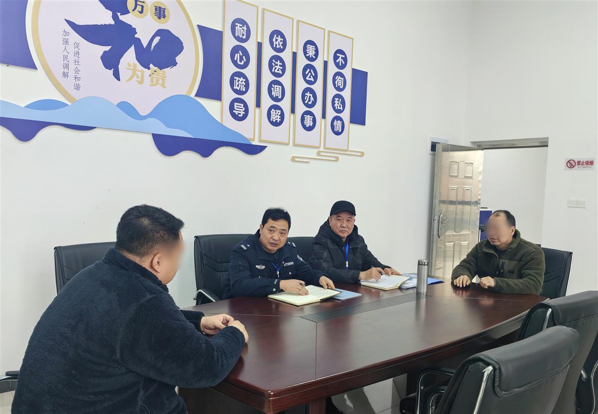 民警和专职调解员开展调解工作