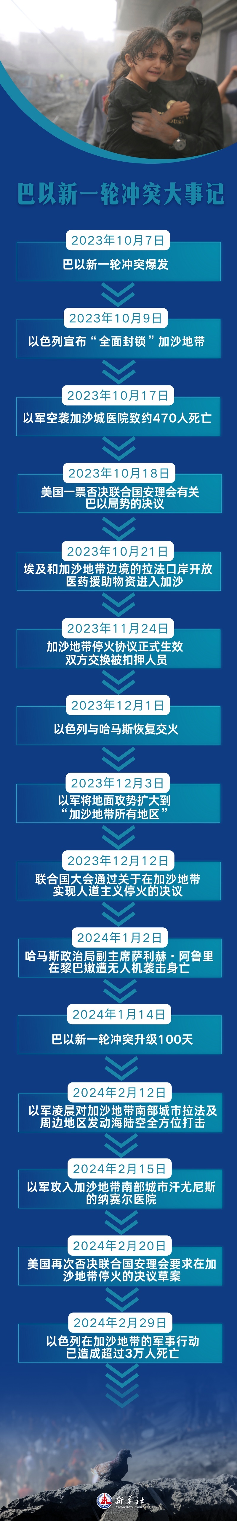 世界卫生组织2月29日确认,去年10月7日新一轮巴以冲突爆发以来,以色列在加沙地带军事行动造成超过3万人死亡。