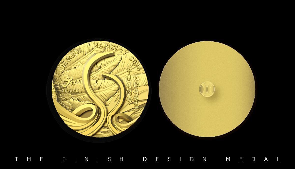 本次大赛奖牌设计灵感主要来自仙桃“鱼米之乡”“中国黄鳝之都”的美誉,正面图案源于发生在湖北仙桃的历史典故——“千里送鹅毛,礼轻情意重”,融合天鹅的形态作为设计元素,金色的羽毛熠熠生辉,纯洁美好,寄托着对仙桃马拉松参赛者们展翅飞翔、逐梦而行的美好祝愿。背面是充满活力的仙桃黄鳝IP形象“鳝小宝”和仙桃地理标志产品——仙桃香米,通过巧妙的排列方式,创造出视觉上的韵律和流动感,将对鱼米之乡、幸福生活的想象,描绘为生机灵动的现代生活场景。