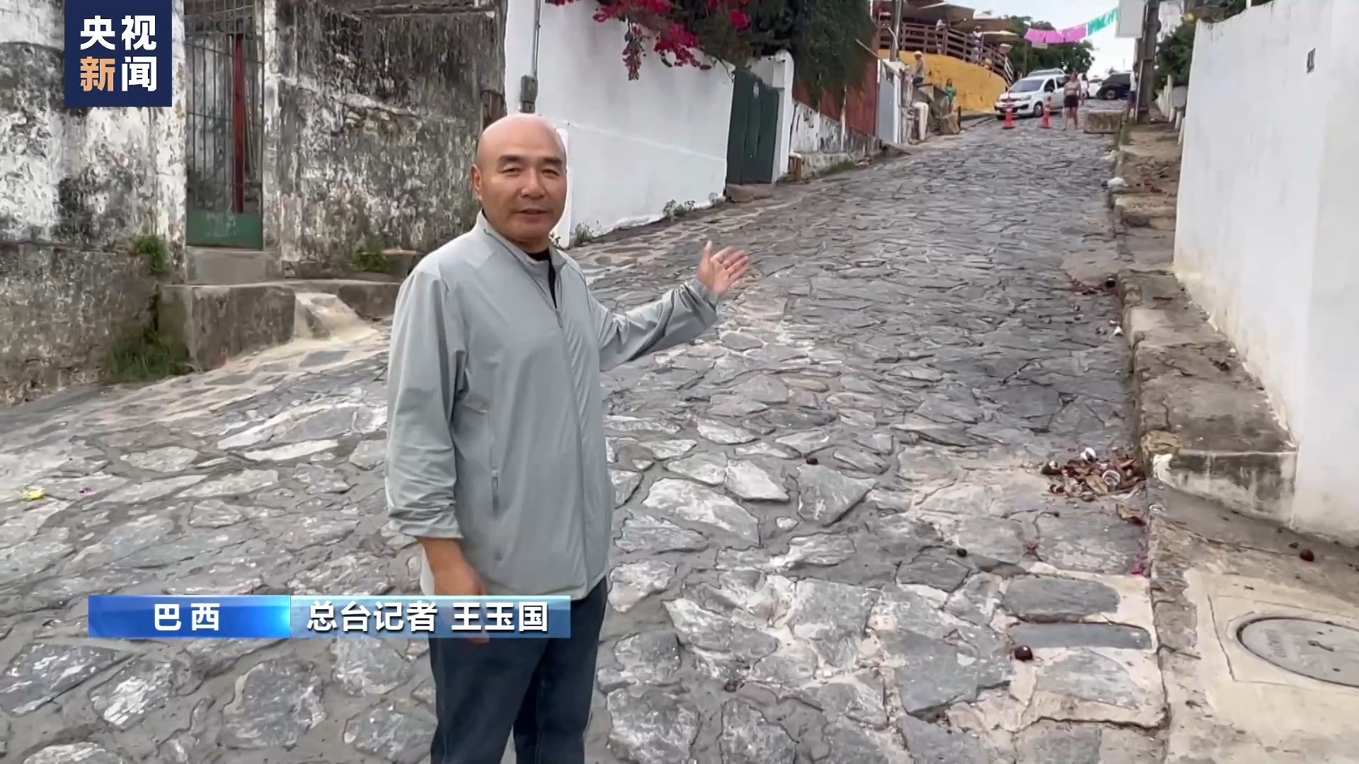 总台记者 王玉国:在奥林达小镇有一条坡路,它是由大大小小的石块铺成的。它的坡度达到了25度,但是却是很多游客的必经之路。因为它的上方是美食一条街,下方是文化旅游中心。而在我的脚下的石块之间,有一些新补的水泥,它们发挥的是黏合剂的作用。