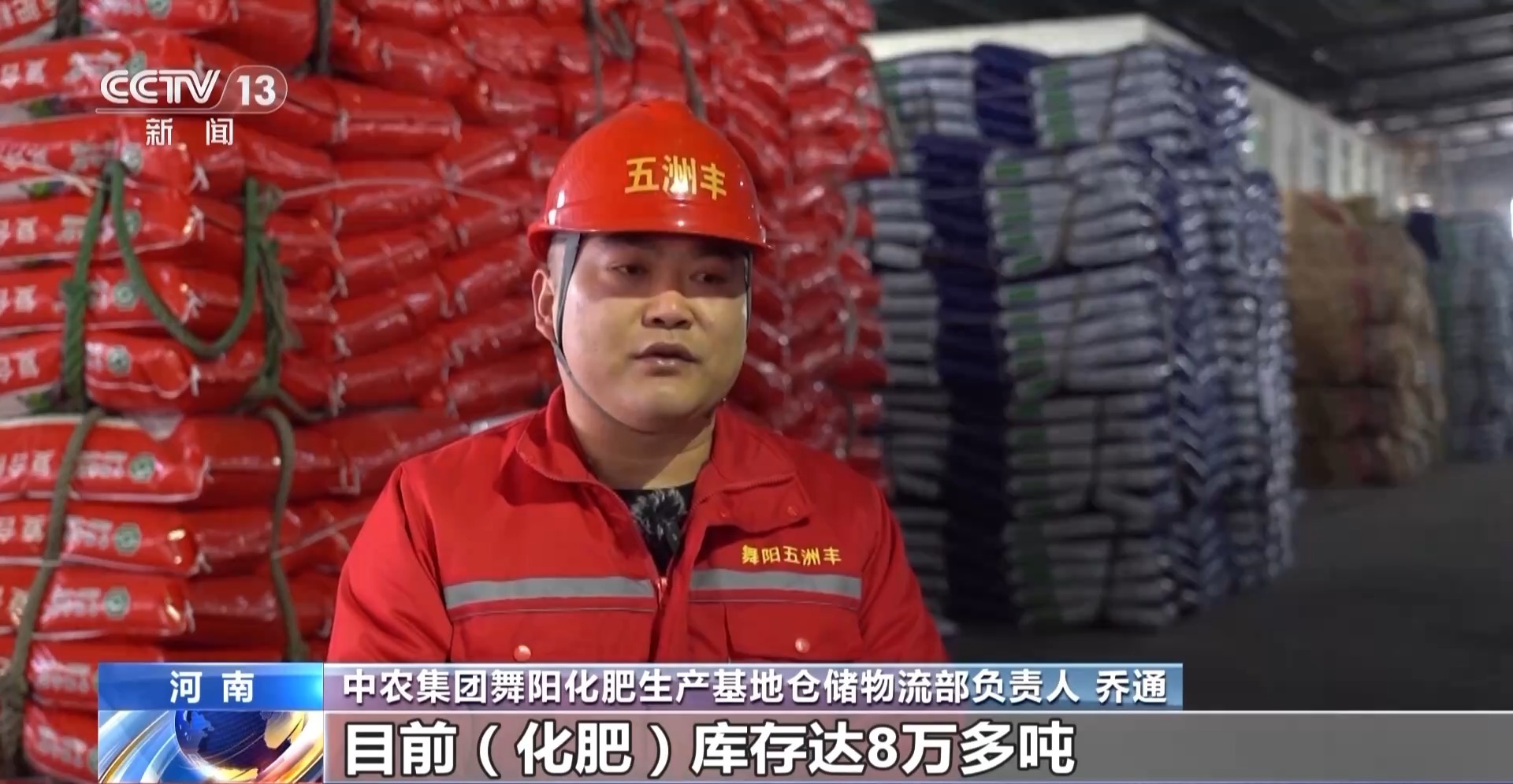 中农集团舞阳化肥生产基地生产部副部长 赵迎光:每天生产1800多吨,发货在1000吨左右。剩下800多吨用于储备后期的发放。