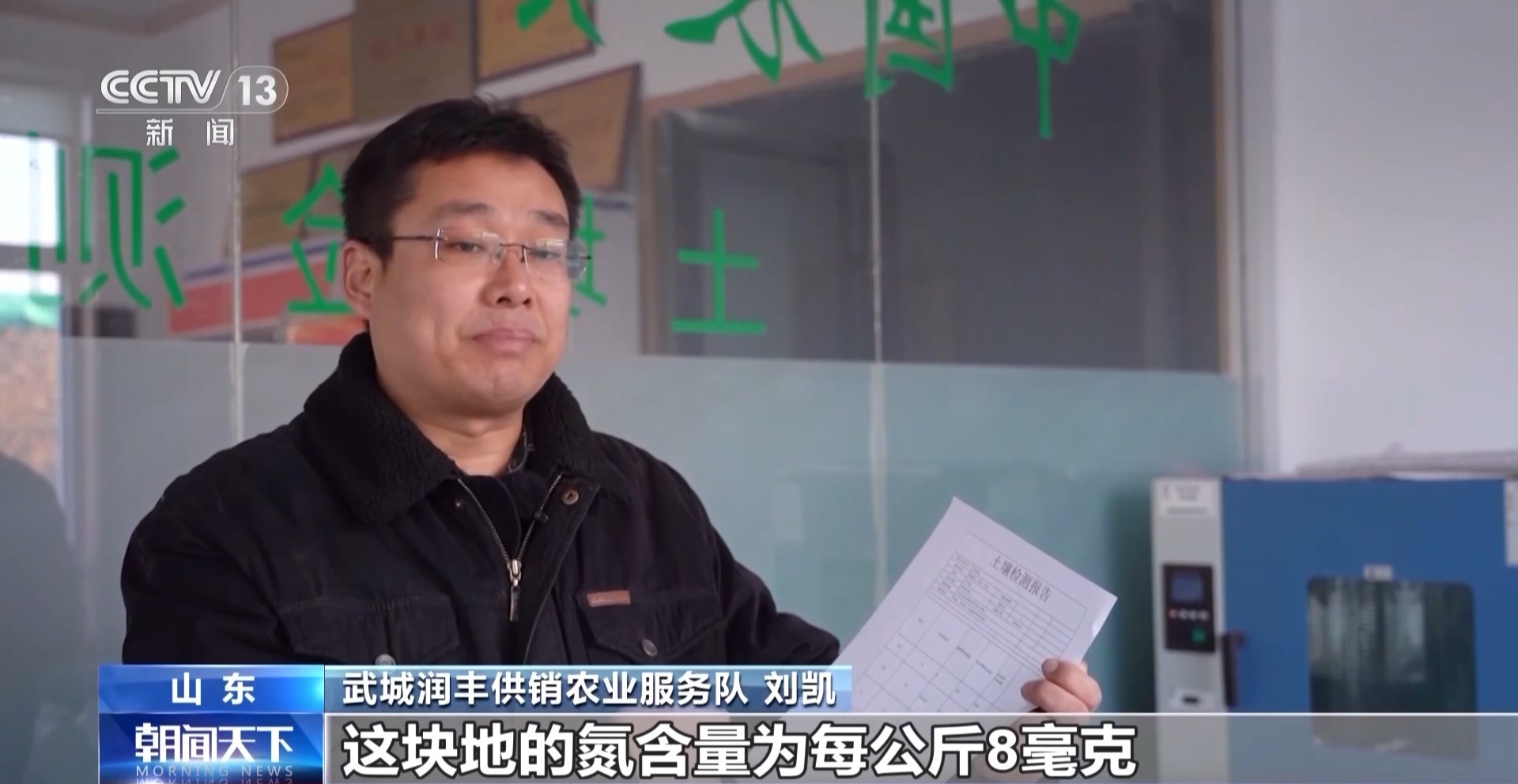 山东武城润丰供销农业服务队 刘凯:这块地的氮含量为每公斤8毫克,低于正常值了,所以我们在这块地的施肥上就要多加入氮肥。