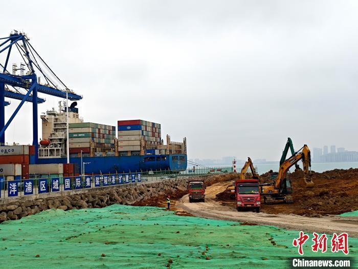 2月28日,海南洋浦区域国际集装箱枢纽港扩建工程项目正在紧张施工。中新社记者 王子谦 摄