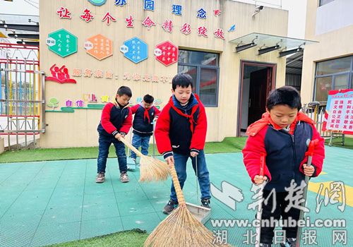 此外,大班幼儿还为小班的弟弟妹妹穿衣服,让大班小朋友学会关心他人、帮助他人。小学部的同学带领中大班幼儿来到户外操场,打扫卫生感受劳动的乐趣。在大家的努力下,操场格外干净。