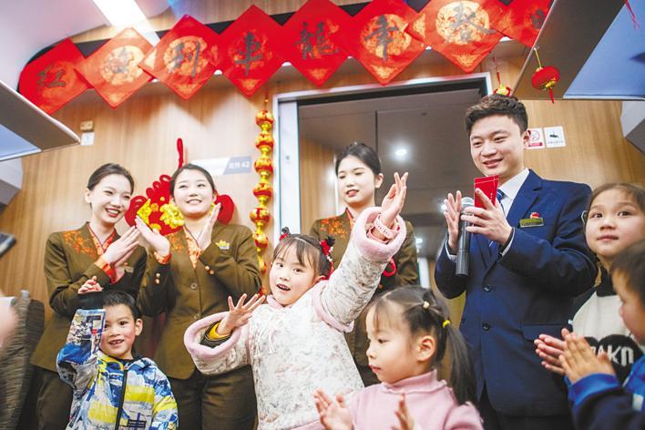 2024年2月,D38乘务组与旅客共迎新春。(受访单位供图)