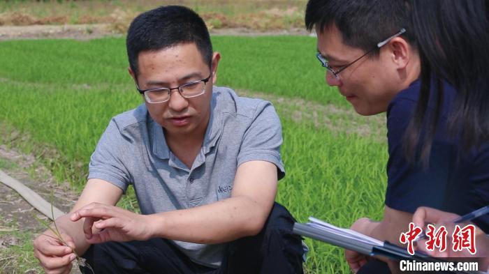 陈槐(左)与科研人员讨论湿地碳循环课题(资料图)。受访者供图