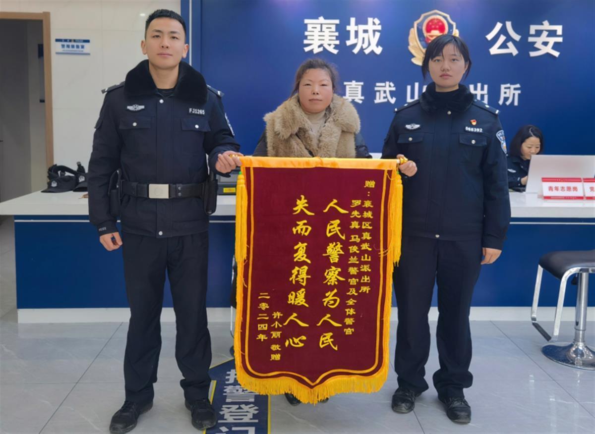 3月5日上午,许女士专程来到湖北襄阳襄城公安分局真武山派出所,将一面写有“人民警察为人民 失而复得暖人心”的锦旗送到民警马俊岚手中。