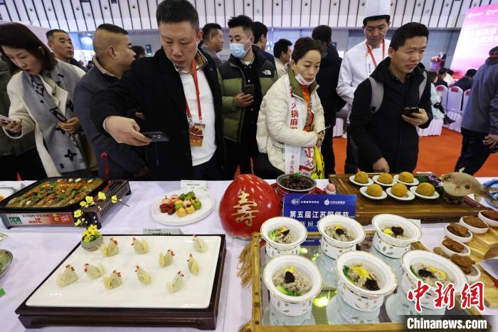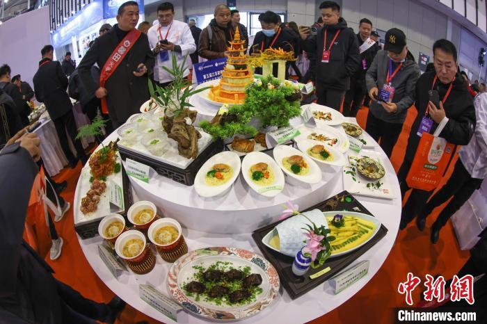 观众欣赏展出的精美菜肴。中新网记者 泱波 摄