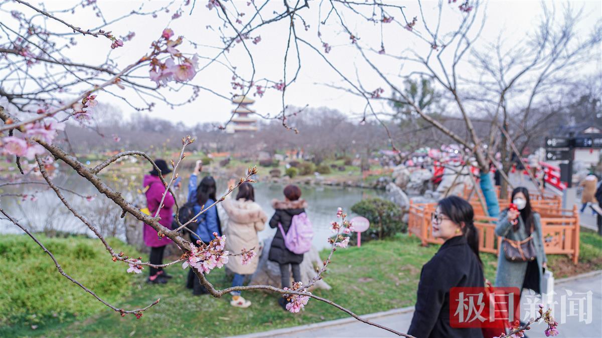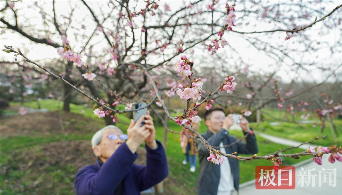 东湖樱花初放,游客喜赏樱