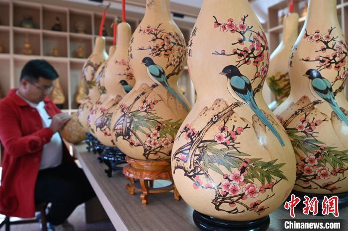 “以墨刻技法制作的葫芦作品,不仅色泽鲜艳,而且不容易褪色。”莫俊玲介绍说,在路庄新村,传统的葫芦工艺以雕刻、烙画为主。她大学毕业返回家乡后,结合在课堂上学习的美术知识,把墨刻技法创新应用在葫芦上。“传统手工艺只有不断创新,才能更具生命力。”