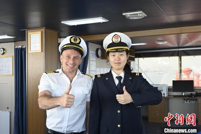 2024年2月,张文倩与外籍船长合影。成宇轩 摄