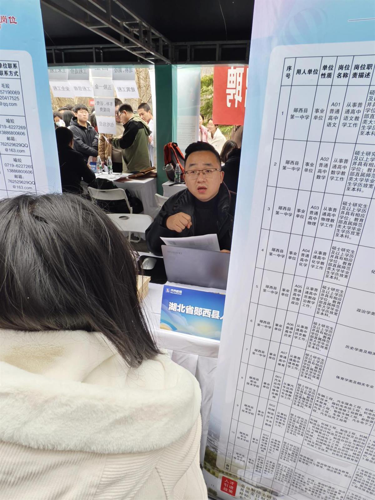 “我想报名郧西县第一中学教师岗位,请问有什么好政策?”“同学,郧西事业单位引进全日制硕士研究生,解决事业编制,给予5万元的生活津贴,还能申报租房或购房补贴等政策。”3月6日,在湖北郧西县赴西安交通大学招才引智双选会现场,郧西招才团成员热情地为入场求职咨询的硕士研究生张泓宇宣传推介引才岗位和政策。