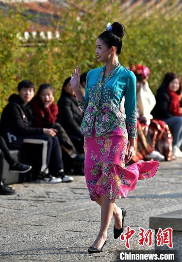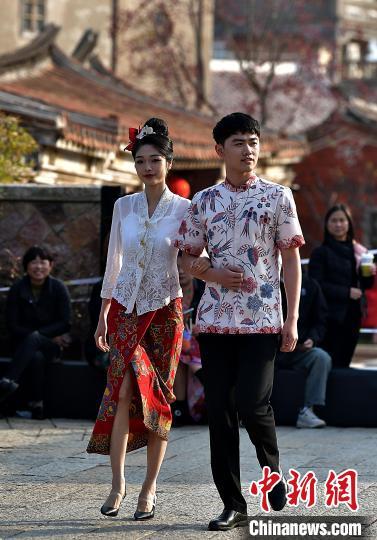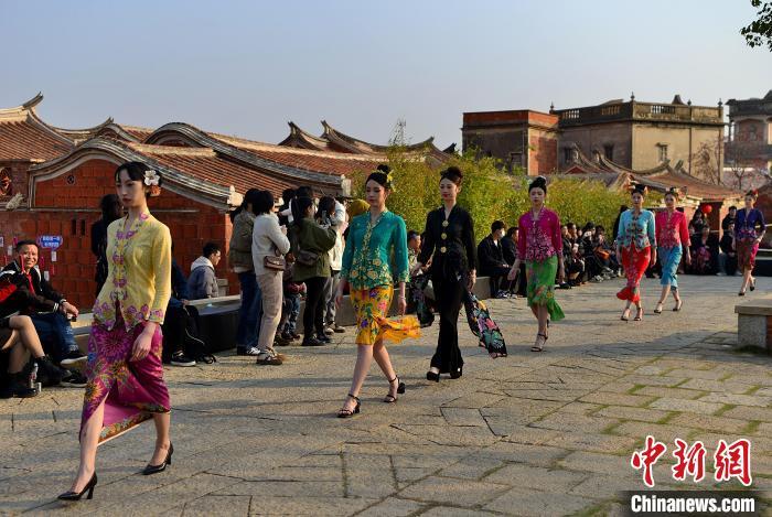 3月8日,模特在晋江梧林传统村内走秀,展示新加坡娘惹服装设计师设计的服装。当日,第三届南洋文化节暨新加坡梧林娘惹文化季活动之一的娘惹服装秀在中国著名侨乡福建晋江梧林传统村落举行,吸引了许多民众前来观看。峇峇娘惹是最早期移民到南洋地区的华人与当地人结婚后生下的后代,男孩称峇峇,女孩叫娘惹。晋江是中国著名侨乡,旅居海外侨胞和台港澳同胞300多万,遍布60多个国家和地区。而位于晋江新塘街道的梧林传统村落,聚集了200多幢承载乡愁的百年建筑,被誉为“华侨建筑博物馆”。