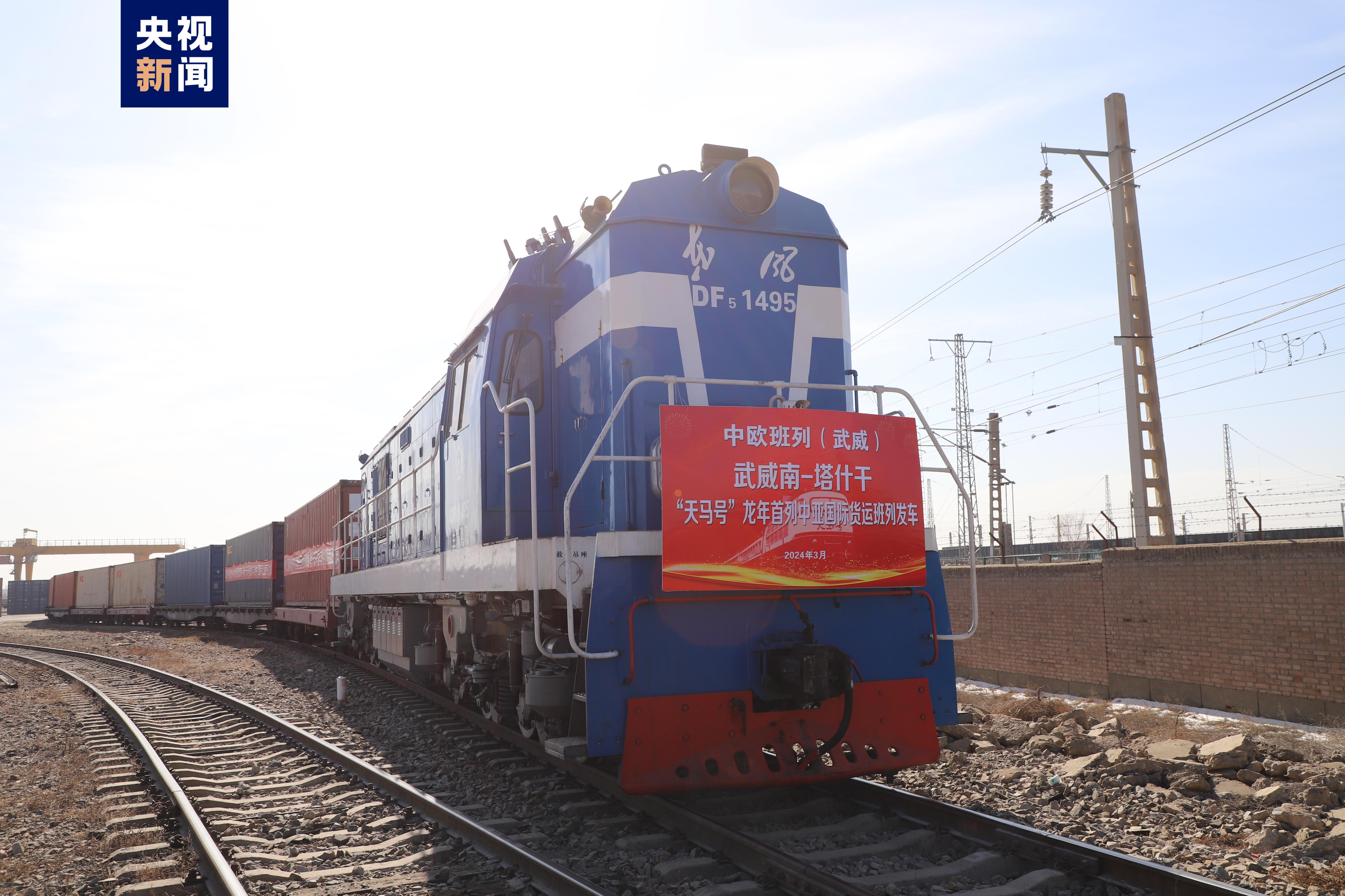 记者从兰州铁路局了解到,3月8日上午11时48分,伴随着汽笛长鸣,75192/1次班列从武威南站顺利发出,这也是2024年甘肃武威开出的首趟中亚班列。据了解,这趟班列装载PET(聚酯切片)14箱、电子设备16箱,混凝土拖泵12箱,光伏支架等共计51车,总重是1613.7吨。该班列从武威南站发车,经霍尔果斯口岸出境,最终抵达乌兹别克斯坦塔什干,行程4143公里,预计运行7天到达目的地。