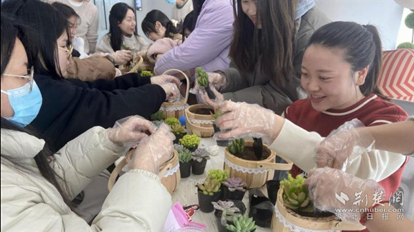 在二桥社区武汉数创大厦,中医院专家李宗舜以通俗易懂的方式,向在场女性职工们讲解女性常见生理健康方面的知识,并呼吁大家要定期做好全面体检,呵护好自己的身体。接下来的绿植DIY体验环节,职工们纷纷动手实践,发挥自己的创造力,将一颗颗多肉植物精心栽种到盆器中,并完成了铺设、培土等步骤。经过一番努力,一盆盆各具特色的多肉微景观相继呈现,看着自己的作品,她们喜笑颜开、爱不释手,纷纷拍照留念。