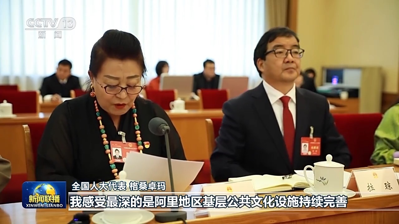 全国人大代表 格桑卓玛:以习近平同志为核心的党中央,始终把人民群众放在心中,我们边疆民族地区老百姓过上了红红火火的好日子。作为一名基层文艺工作者,我感受最深的是阿里地区基层公共文化设施持续完善,县、乡、村都有了图书馆、农家书屋、文化站。