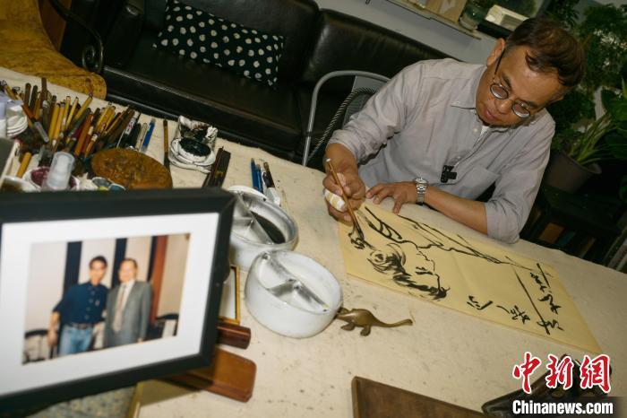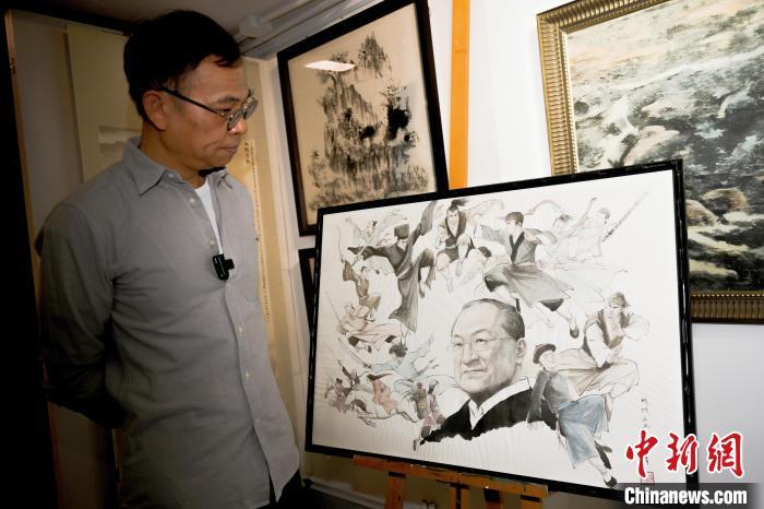 3月6日,香港画家李志清在其工作室接受中新社记者采访,回忆他与金庸相处的点点滴滴。中新社记者 陈永诺摄