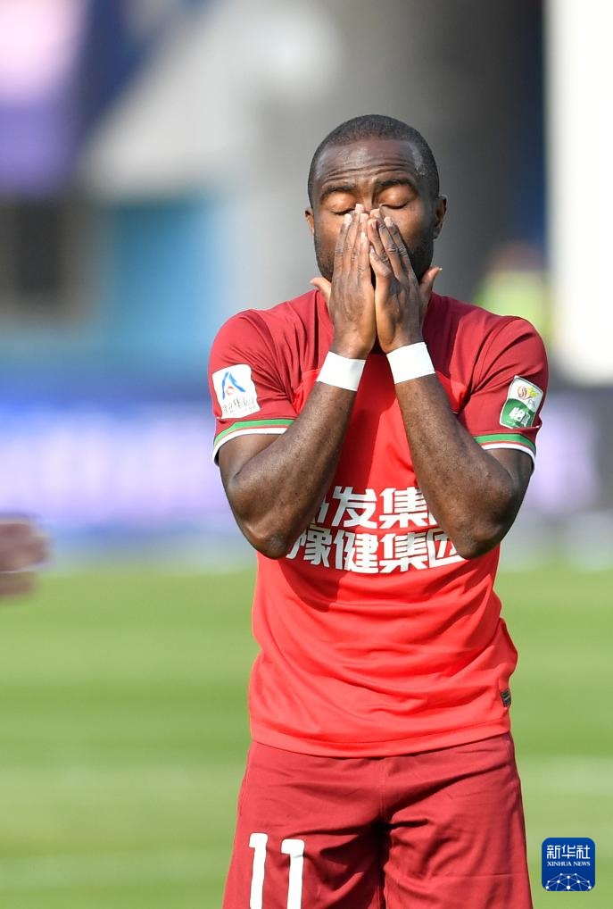 3月9日,河南俱乐部酒祖杜康队球员阿奇姆彭在比赛中错失破门机会后。
