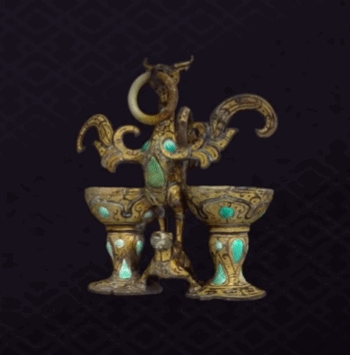 西汉铜朱雀衔环杯通体采用错金工艺