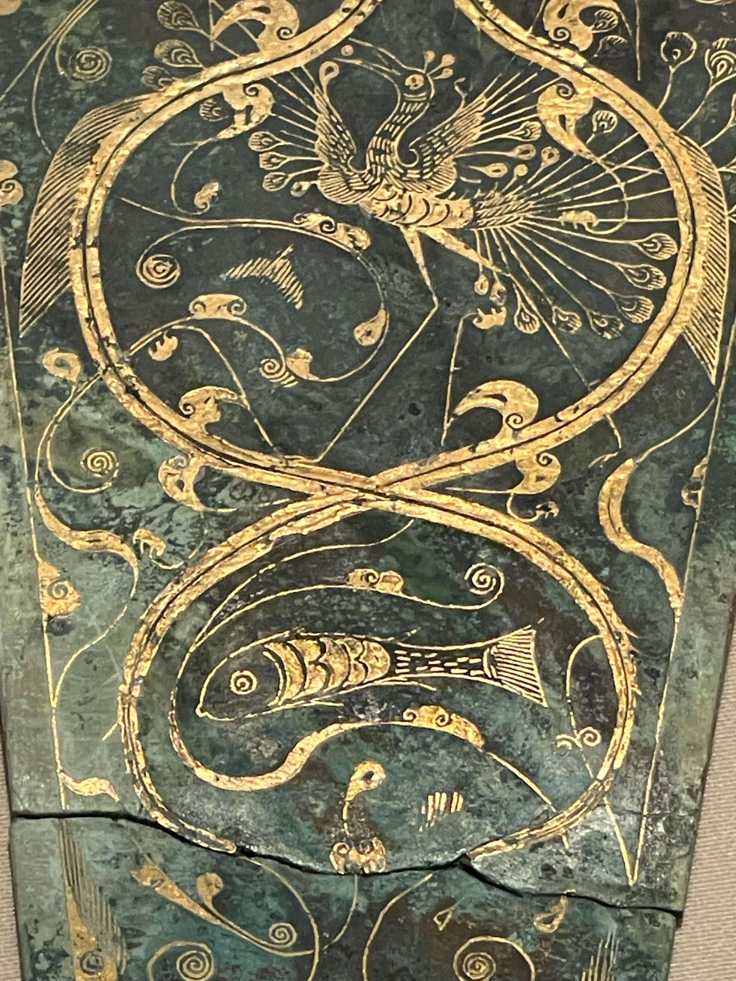 日月四神纹错金青铜当卢所使用的错金银工艺