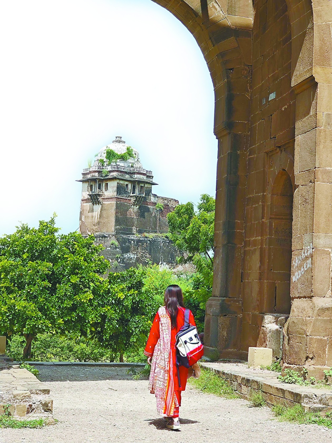 记者身穿沙尔瓦·卡米兹参观罗赫达斯堡。