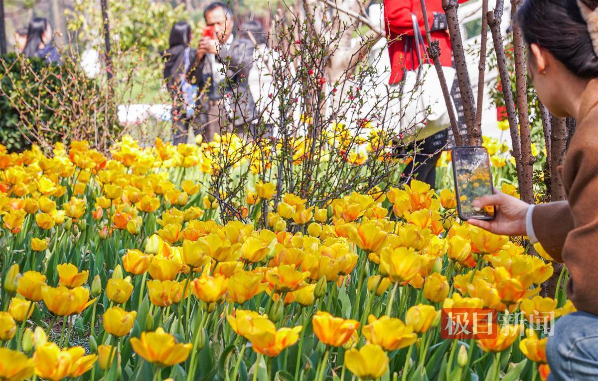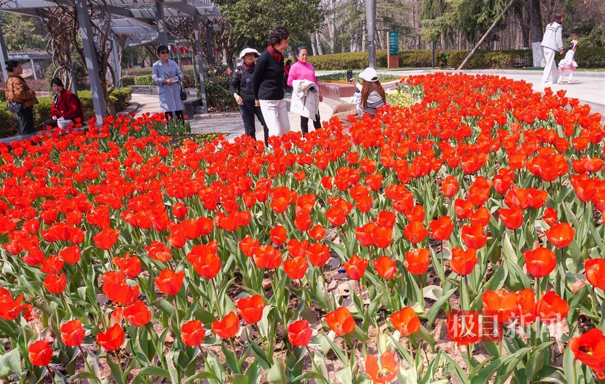 今年温暖的春天比往年来得迟了一点!武汉解放公园郁金香展于近日上线了,20个品种、近10万株郁金香正灿烂地笑着,静待你来欣赏,感受春日的美好。