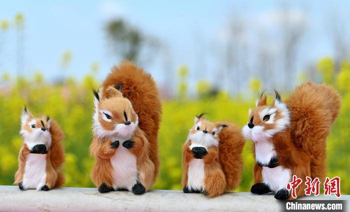 油菜花田里的小玩偶。记者 安源 摄