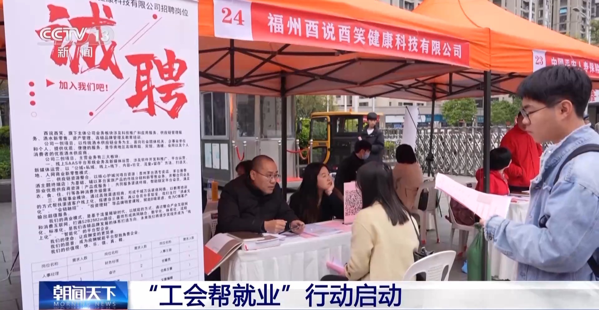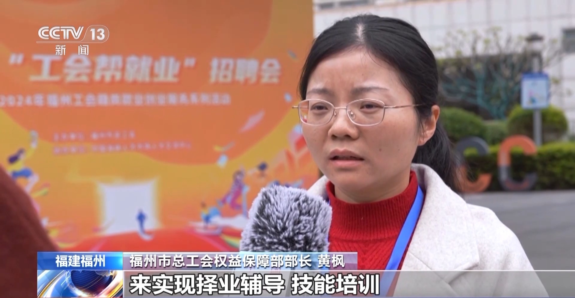 福州市总工会权益保障部部长 黄枫:我们工会打造了工会稳岗就业创业服务超市,线下通过举办招聘会,来实现择业辅导、技能培训还有创业陪跑等一条龙的服务。