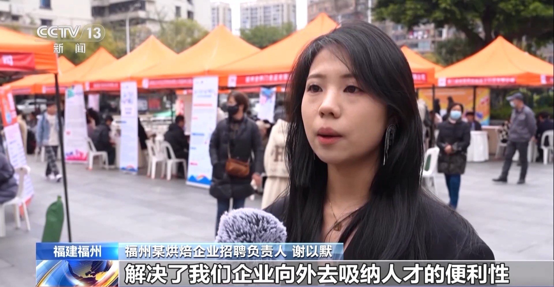 福州某烘焙企业招聘负责人 谢以默:通过主办方给我们提供了这样一个平台,解决了我们企业向外去吸纳人才的便利性,对我们来说的话,肯定是节约了成本。