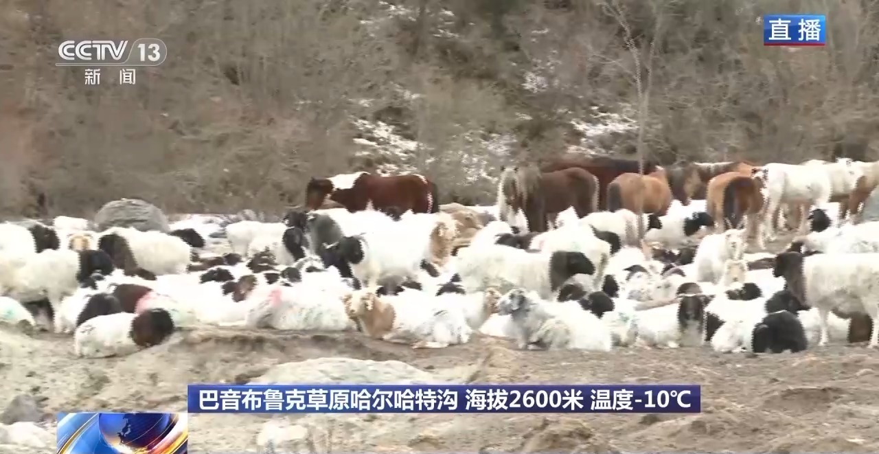 总台记者 刘飞飞:天山深处、巴音布鲁克草原的哈尔哈特沟,虽然是一个山谷,但是海拔却在2600米左右。这里就是牧民才仁一家所在的冬窝子,他们在这里已经生活了四个多月。今天他们就要踏上转场之路。才仁家的400多只羊已经集结好,整装待发。