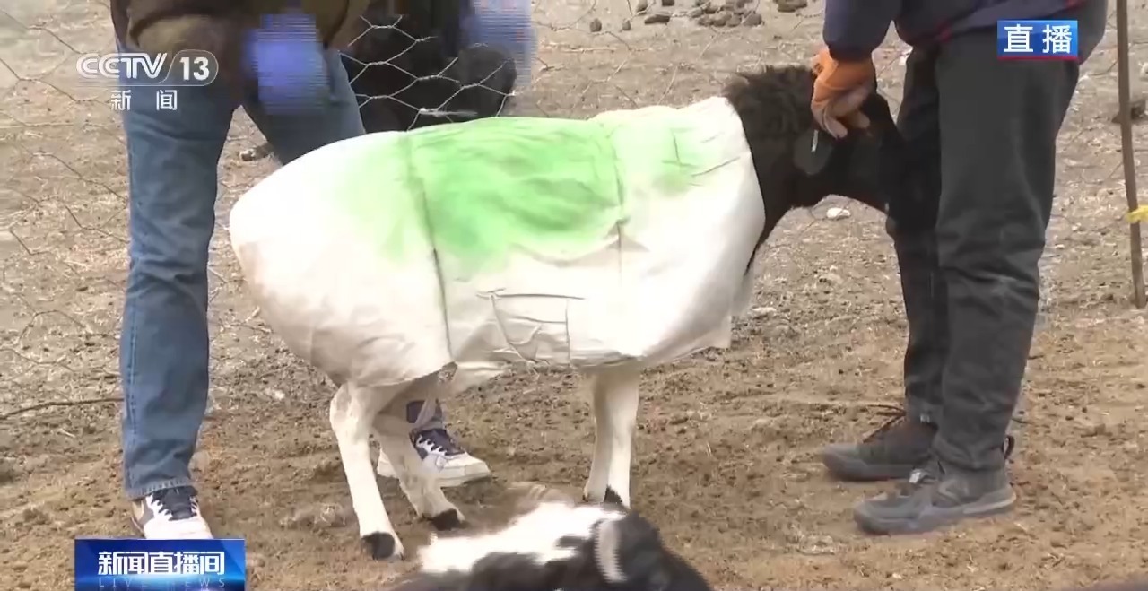 今年的转场有了很大不同,给羊穿上了衣服。这是咱们国家自主研发的高分子材料制作的“羊衣”,具有防风防雪和保暖的作用。实际测试结果显示,穿上这样的“羊衣”可以使羊体表温度比环境温度升高3~5℃。这些“羊衣”已经在我国和中亚的部分地区推广,这是第一次在巴音布鲁克试点推广。