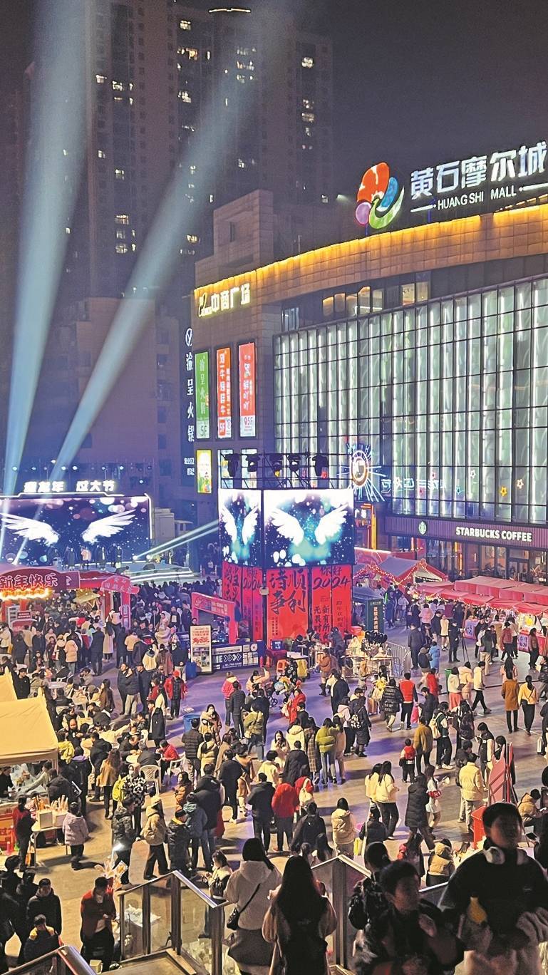 今年春节,改造后的黄石交通路步行街惊艳亮相。不少市民和游客纷纷拍照打卡。(记者薛婷 通讯员 周巍 摄)