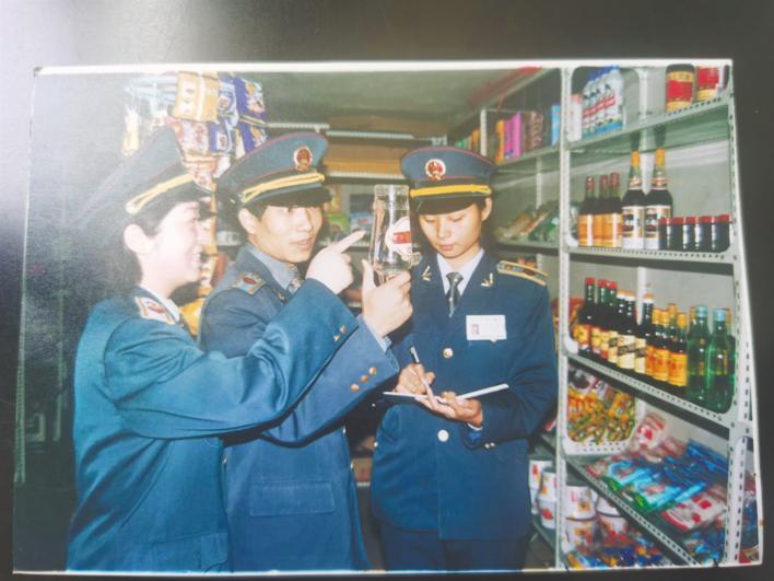上世纪90年代,鄂州市工商局工作人员对市场上销售的白酒产品进行检查(资料照片)。